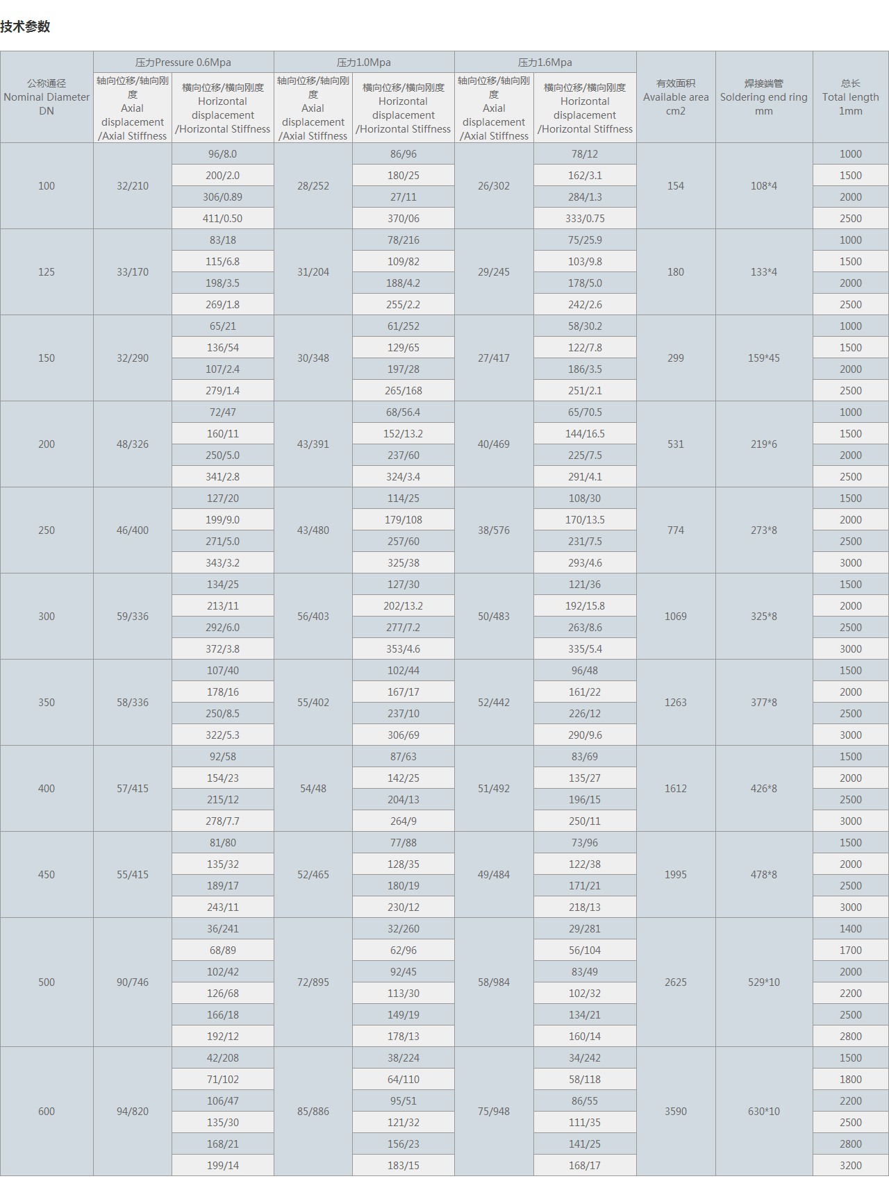 JXH小拉桿橫向波紋補償器技術參數(shù)