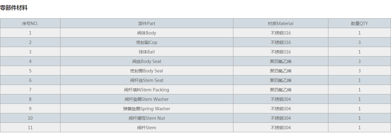 序號(hào)NO. 部件Part 材質(zhì)Material 數(shù)量QTY