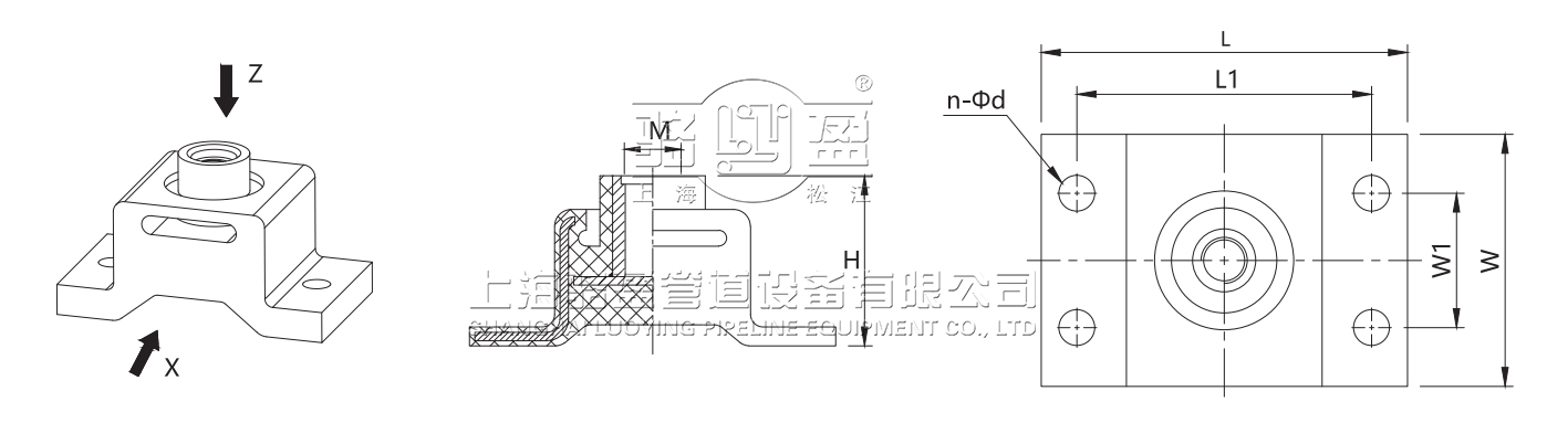 BE型橡膠隔振2S由金屬與橡膠復(fù)合制成,金屬表面全部包復(fù)橡膠,能防止金屬銹蝕。產(chǎn)品固有頻率低,阻尼比適宜,橫向剛度高于垂向剛度,適用平置、倒置及側(cè)掛等多種安裝形式。平置使用時(shí),橫向穩(wěn)定性好。當(dāng)承受較大沖擊時(shí),可自動(dòng)限位保護(hù),同時(shí)對(duì)共振峰的抑制能力很強(qiáng),對(duì)瞬態(tài)沖擊響應(yīng)瞬時(shí)過度工況等引起的自振能迅速消失,設(shè)備不致出現(xiàn)晃動(dòng)。該產(chǎn)品在較寬的干擾頻率范圍內(nèi)有相當(dāng)明顯的隔振效果,能適用于各 類陸地、船用機(jī)械設(shè)備,如柴油機(jī)、風(fēng)機(jī)、水泵、空壓機(jī)、空調(diào)機(jī)、精密儀器儀表等中、小型機(jī)械設(shè)備的隔振。對(duì)有水平擾力的機(jī)械設(shè)備,使用本隔振器能取得良好的隔振效果。