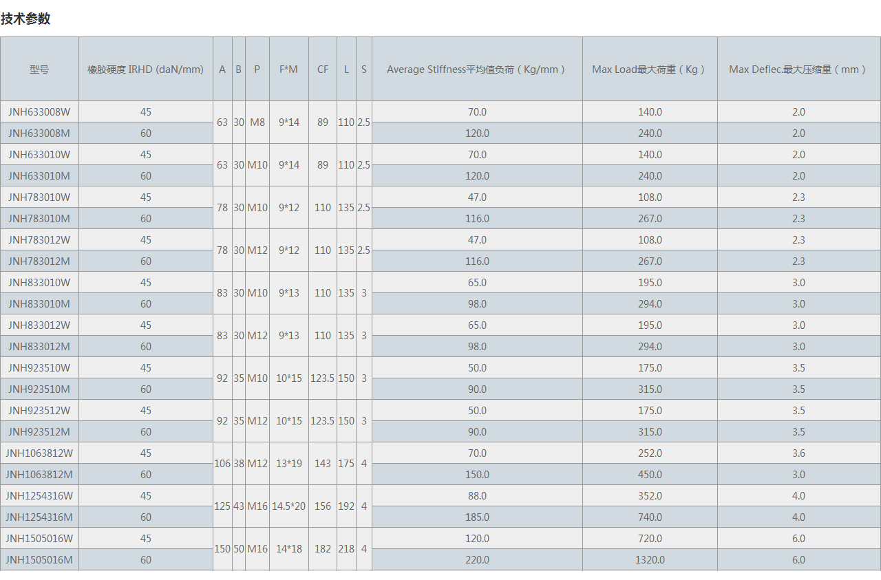2、結(jié)構(gòu)簡(jiǎn)單,安裝方便,為了保證JNH橡膠避震器彈簧的橫向穩(wěn)定,很佳荷載為預(yù)壓承載上下40%。