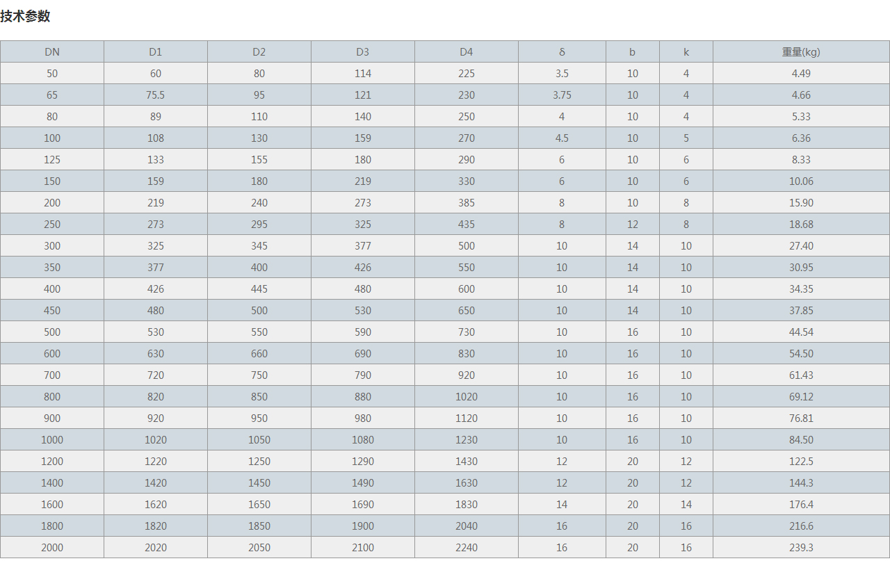 DN D1 D2 D3 D4 δ b k 重量(kg)